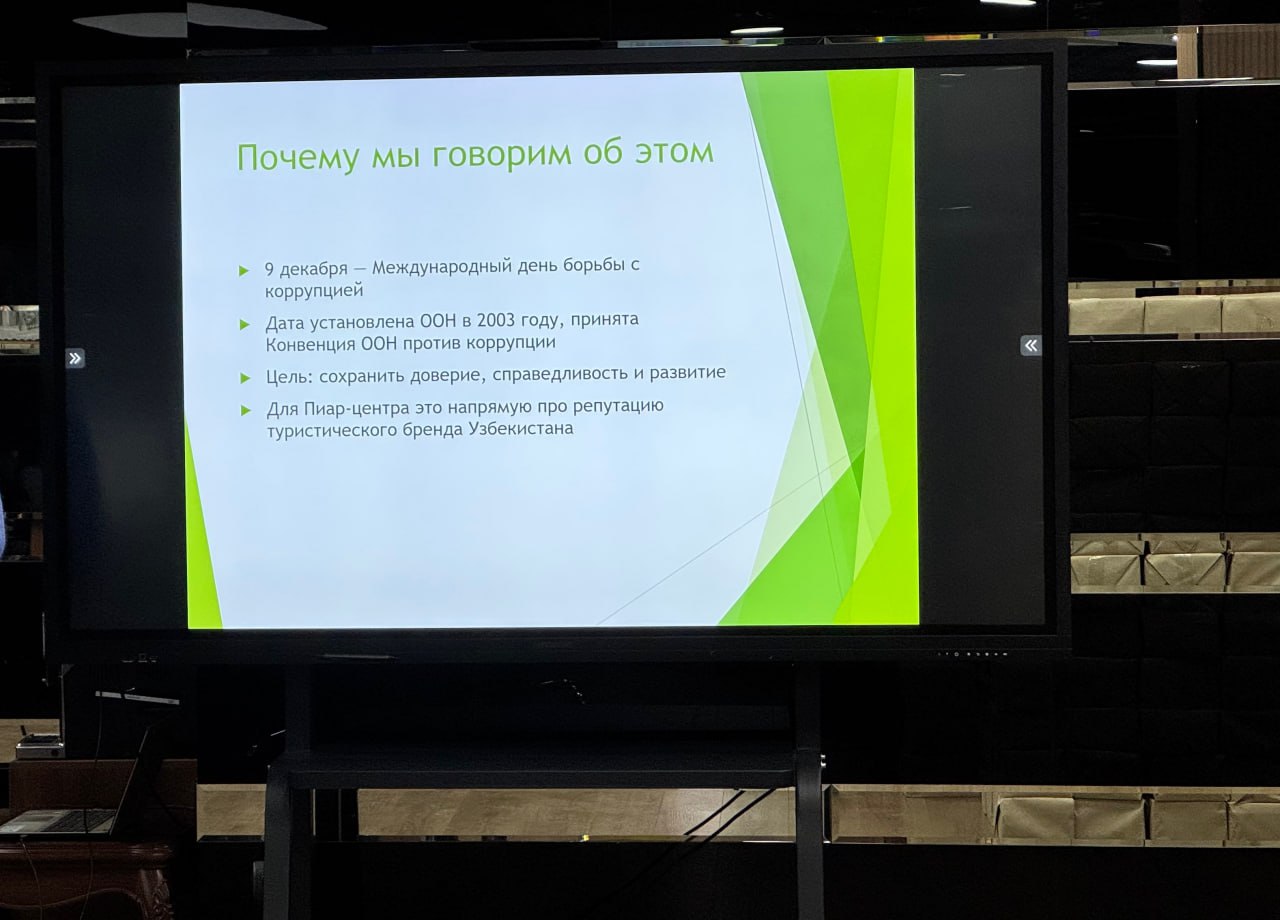 9-dekabr — Xalqaro korrupsiyaga qarshi kurashish kuni munosabati bilan 2025-yil 6-noyabr kuni soat 16:00 da “Aksilkorrupsiya oyligi” doirasida Milliy PR-markazi binosida trening mashg‘uloti bo‘lib o‘tdi.